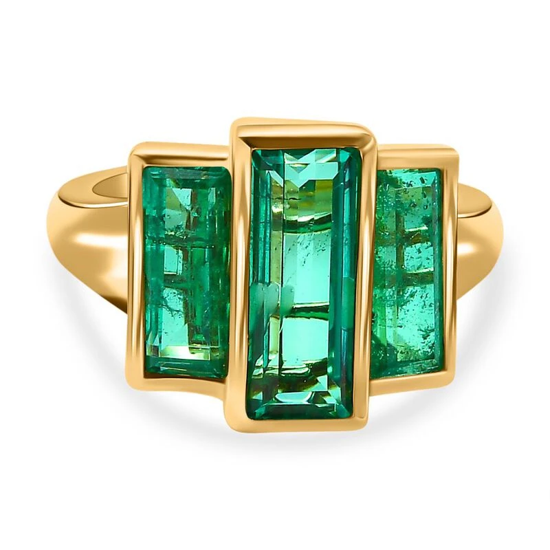 Smaragd-Triplette-Quarz Ring, 925 Silber Vergoldet (Größe 16.00) Ca. 5.43 Ct