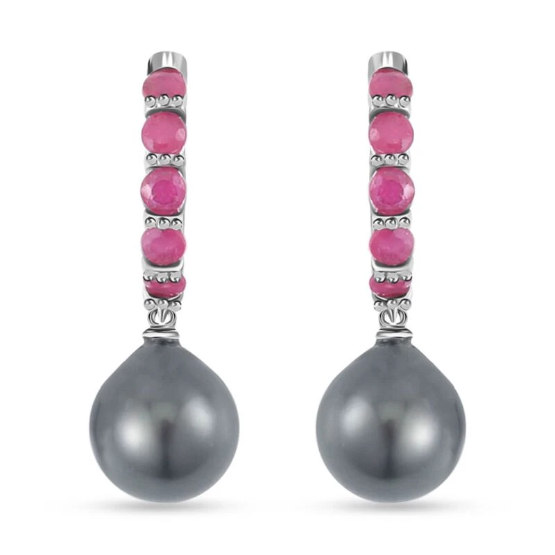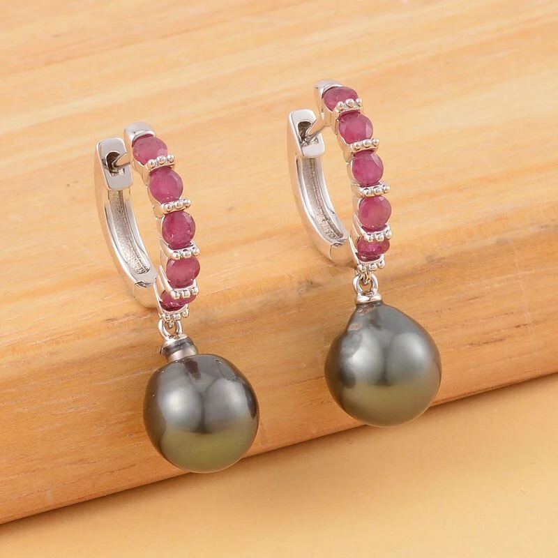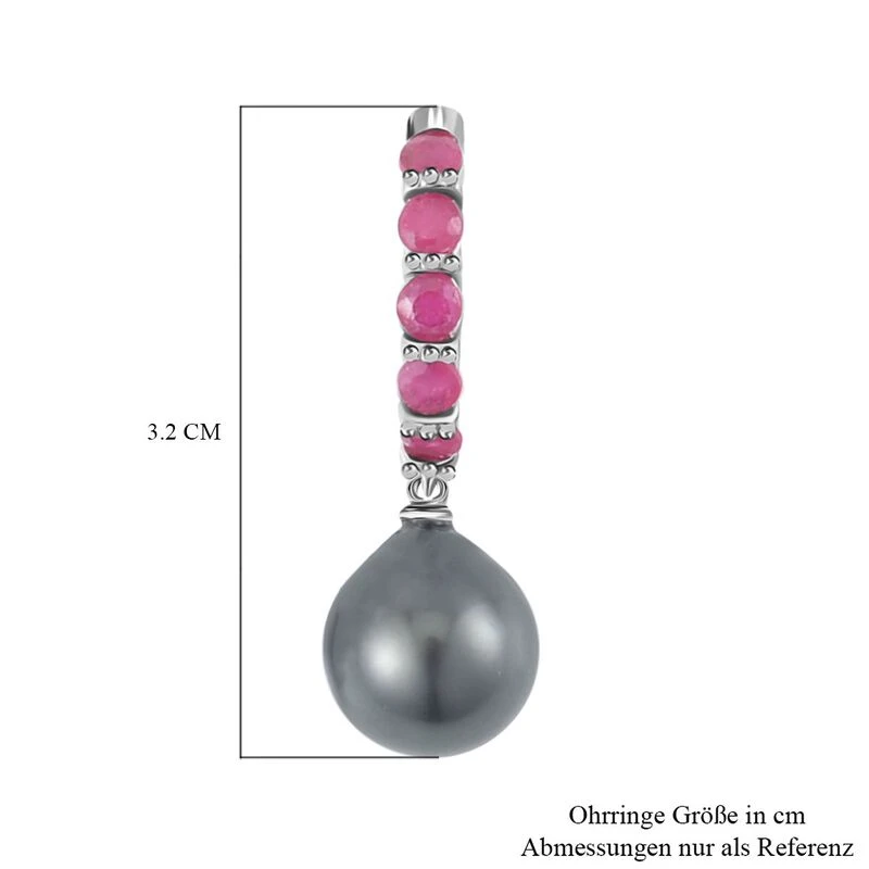 Tahiti Perle, Afrikanischer Rubin (Fissure Gefüllt) Ohrringe, 925 Silber Rhodiniert, Ca. 1.50 Ct