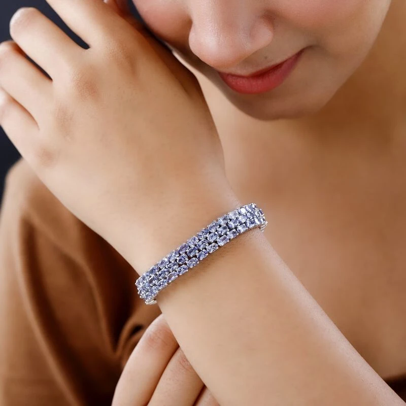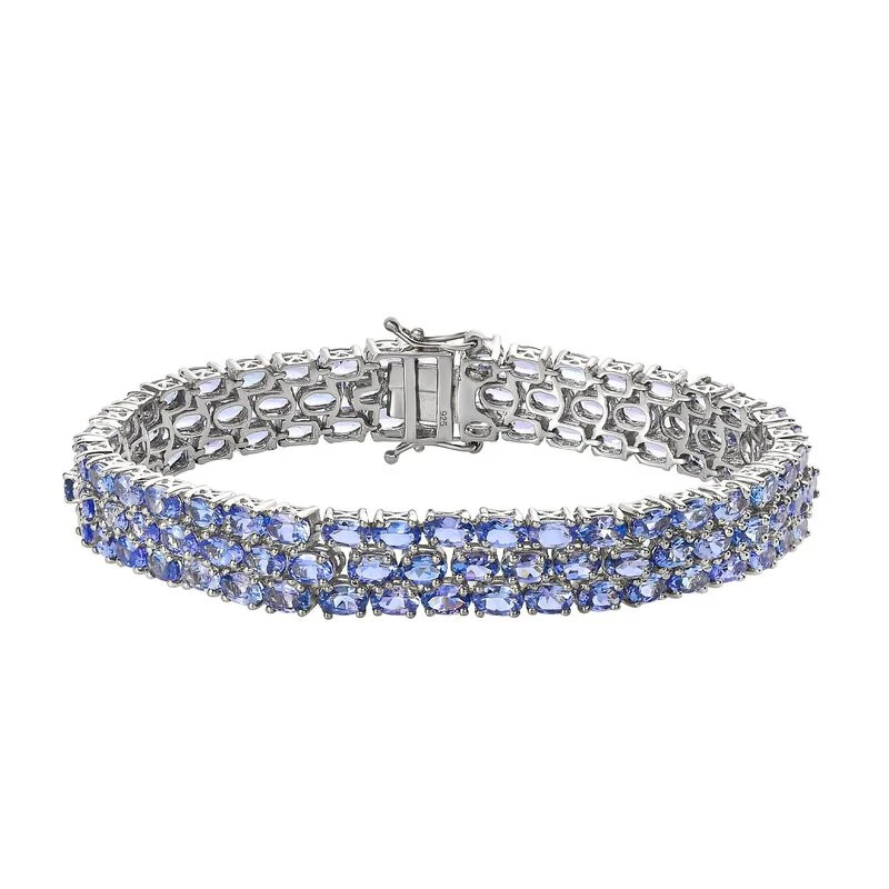 Tansanit Armband, Ca. 19 Cm, 925 Silber Platiniert Ca. 28,27 Ct