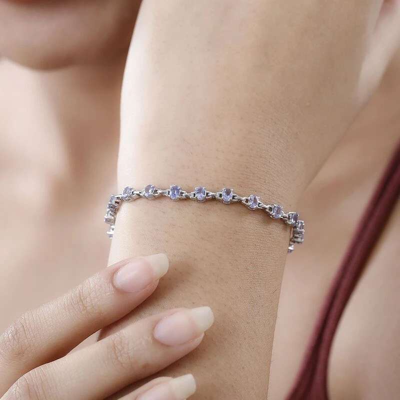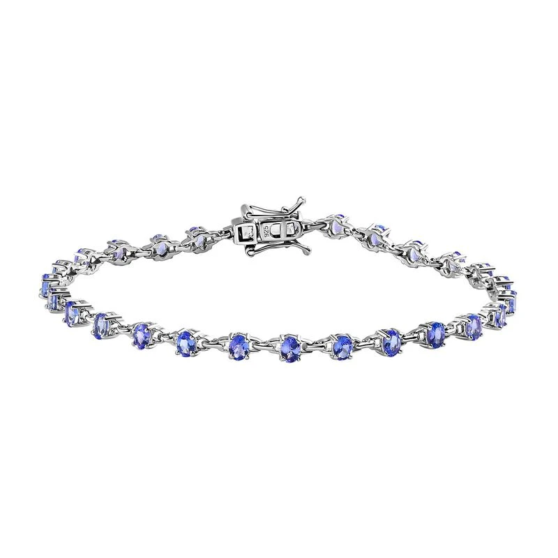 Tansanit Armband Ca. 20 Cm 925 Silber Platiniert Ca. 4,27 Ct.