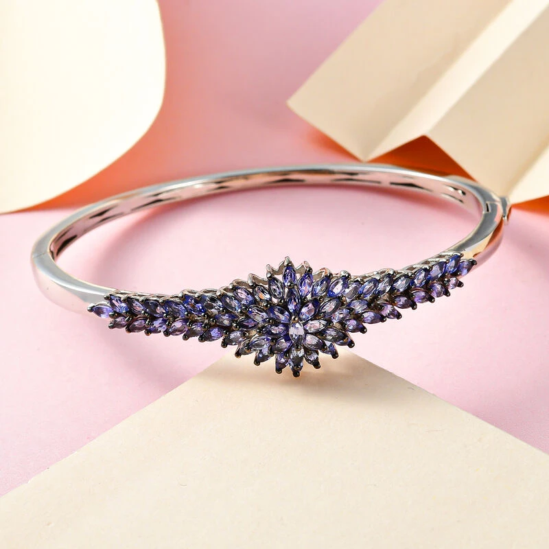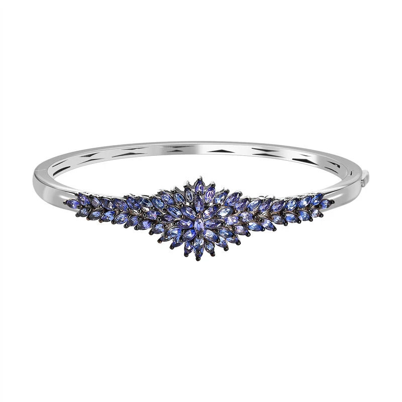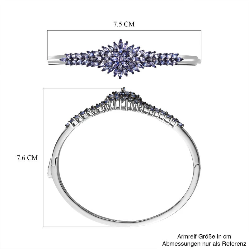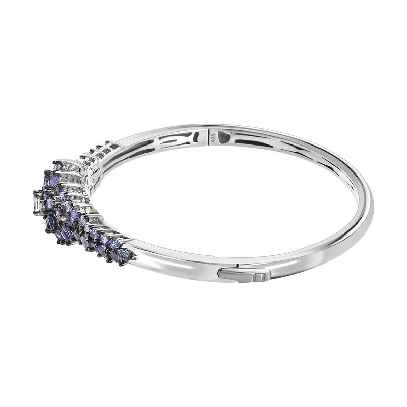 Tansanit Armreif, Ca. 19 Cm, 925 Silber Platiniert Ca. 5.35 Ct