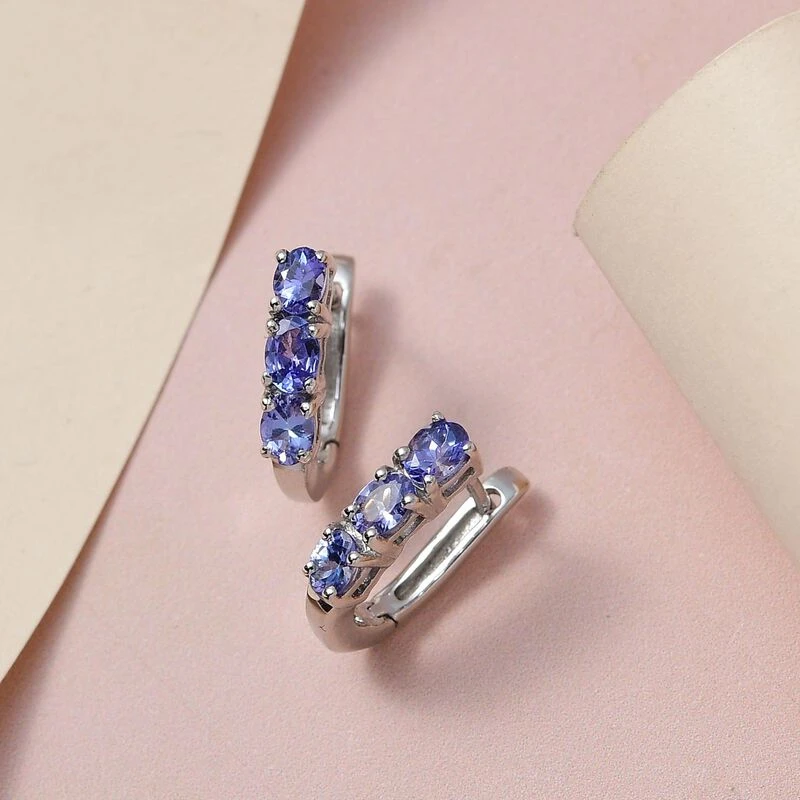 Tansanit Creolen, 925 Silber Platiniert, Ca. 1.10 Ct