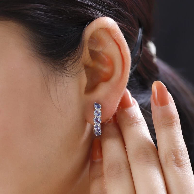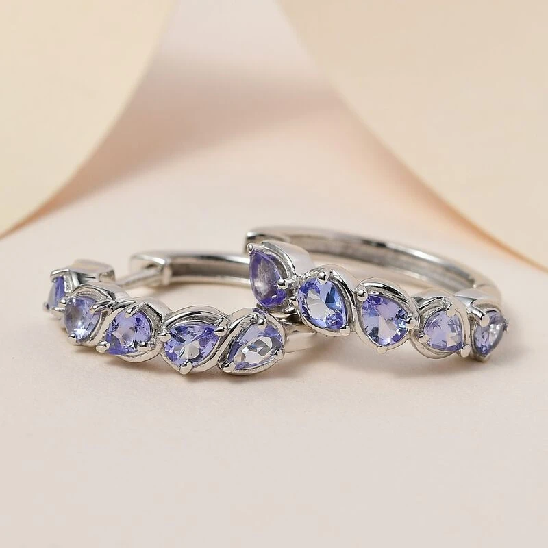 Tansanit Creolen, 925 Silber Platiniert Ca. 1.39 Ct
