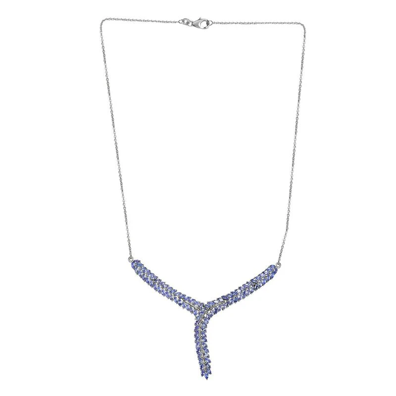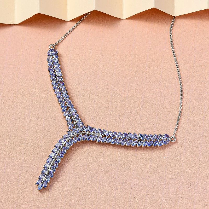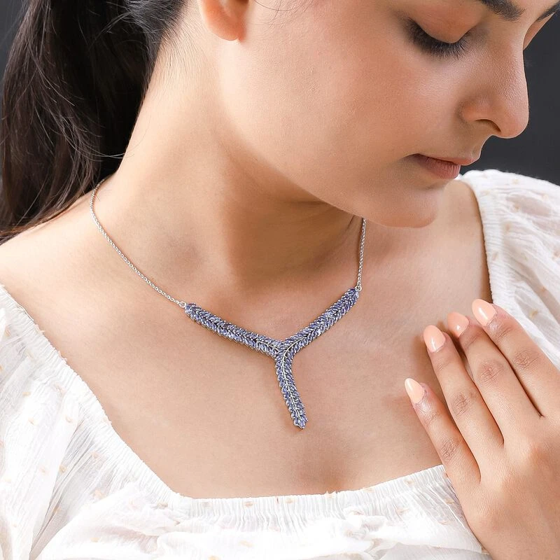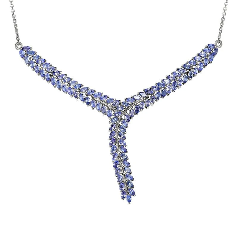 Y-Halskette im Blattmuster mit Tansanit (7,14 ct.) in platiniertem Silber (11,8g). Eleganter und zeitloser Schmuck zu exklusiven Preisen – jetzt zugreifen!