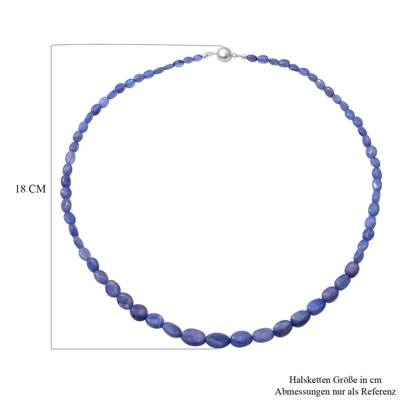 Tansanit Halskette, Ca. 50 Cm, 925 Silber Rhodiniert Ca. 125.00 Ct