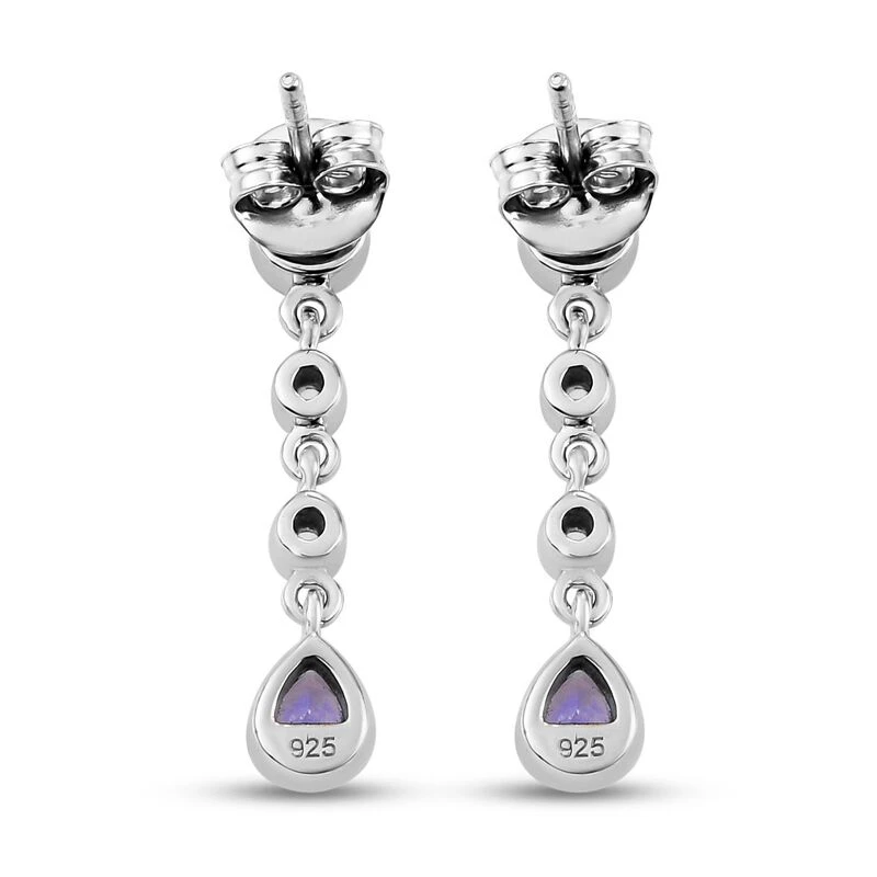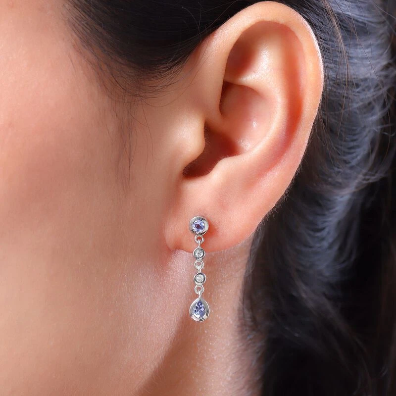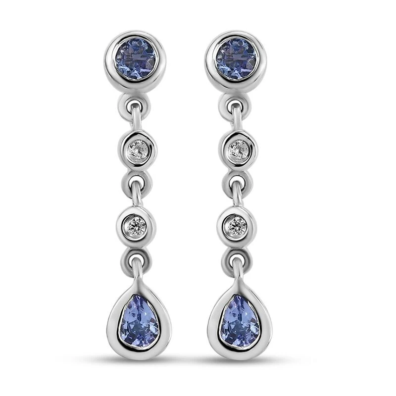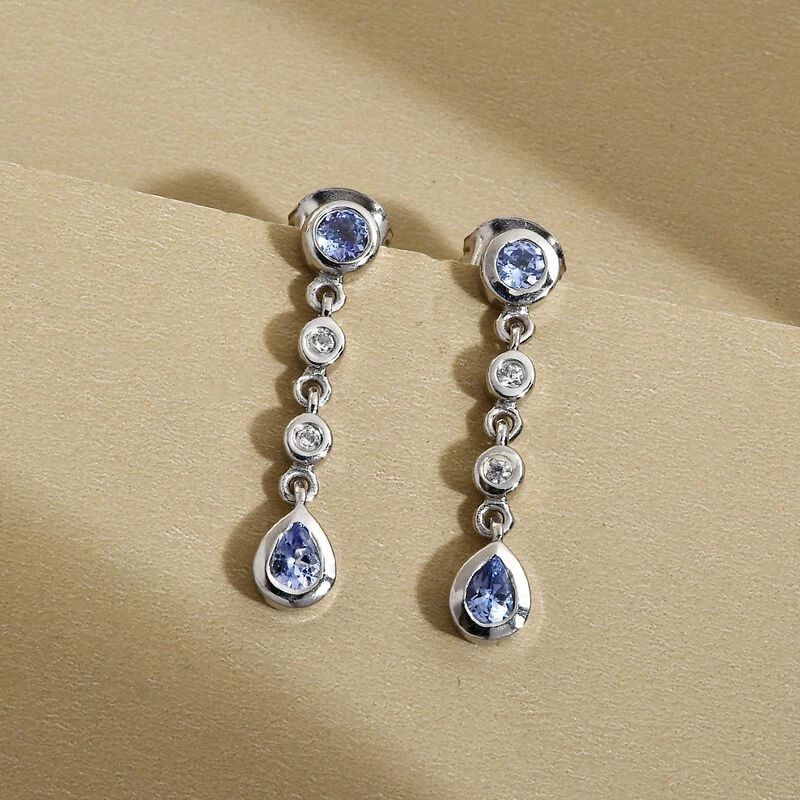 Diese Ohrringe für Damen sind mit 4 Tansaniten und 4 Zirkonen besetzt und bringen den Glanz der Geburtssteine des Monats Dezember in Ihre Schmuckkollektion. Der Tansanitschmuck für Damen ist aufgrund seiner Seltenheit ein Must-have. Er ist hier in 2,4 Gramm platiniertem Silber gegossen. Stylen Sie sie mit Steckverschlüssen.