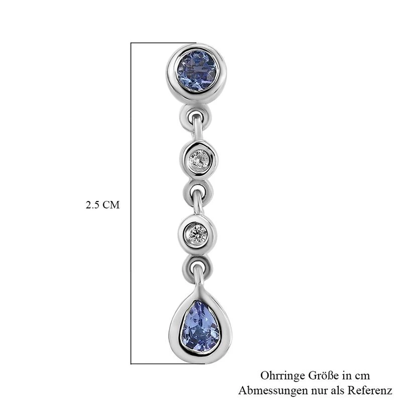 Tansanit Und Weiße Zirkon Ohrringe, 925 Silber Platiniert, Ca. 0.58 Ct