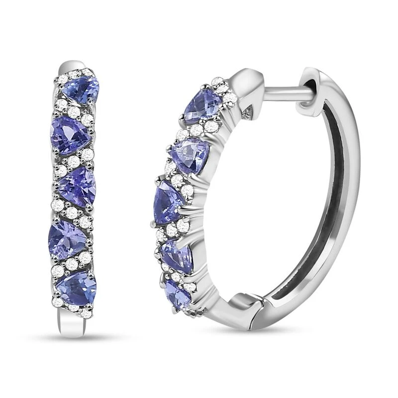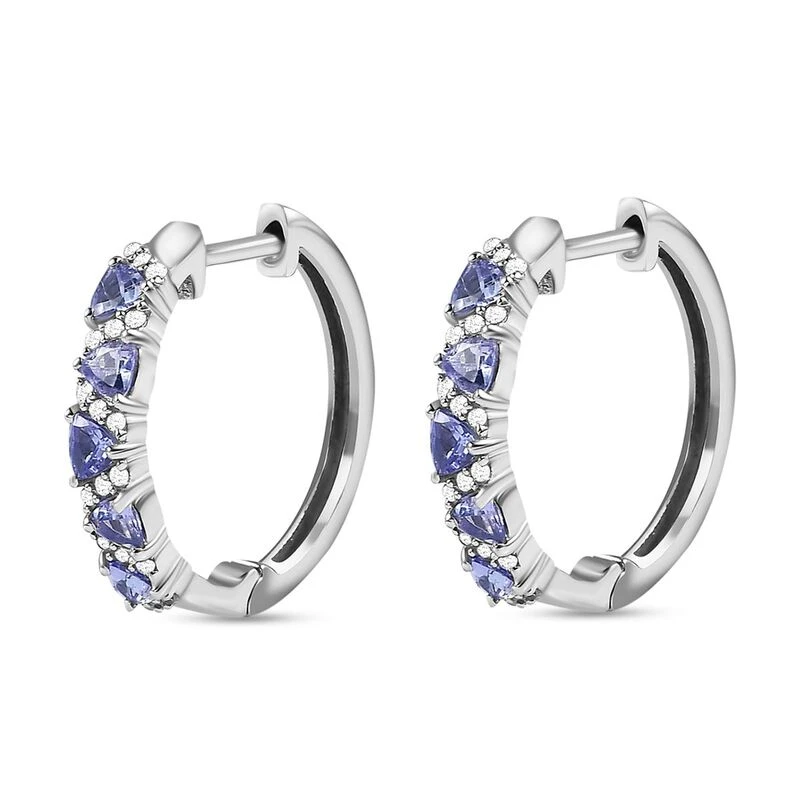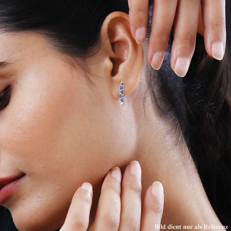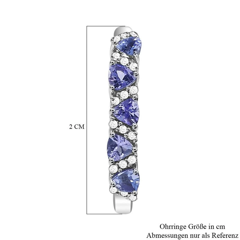 Tansanit, Weißer Zirkon Ohrringe, 925 Silber Platiniert Ca. 0.99 Ct