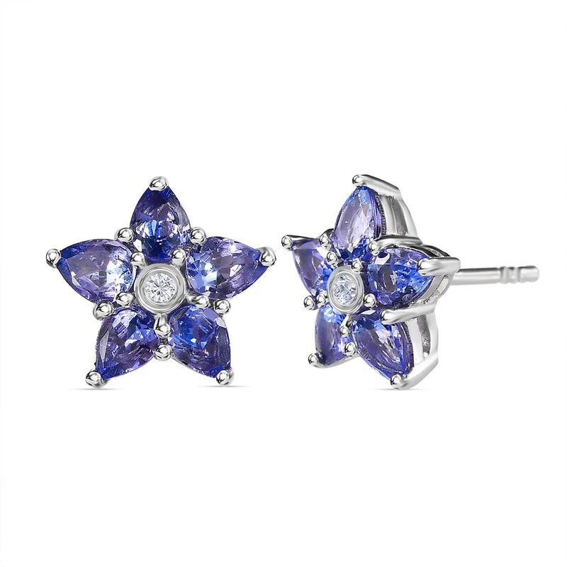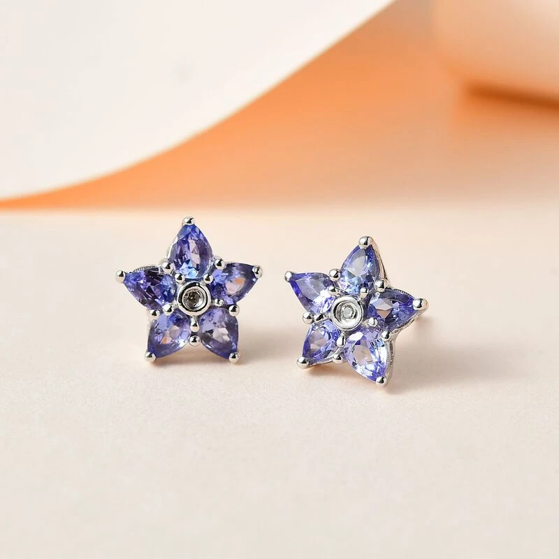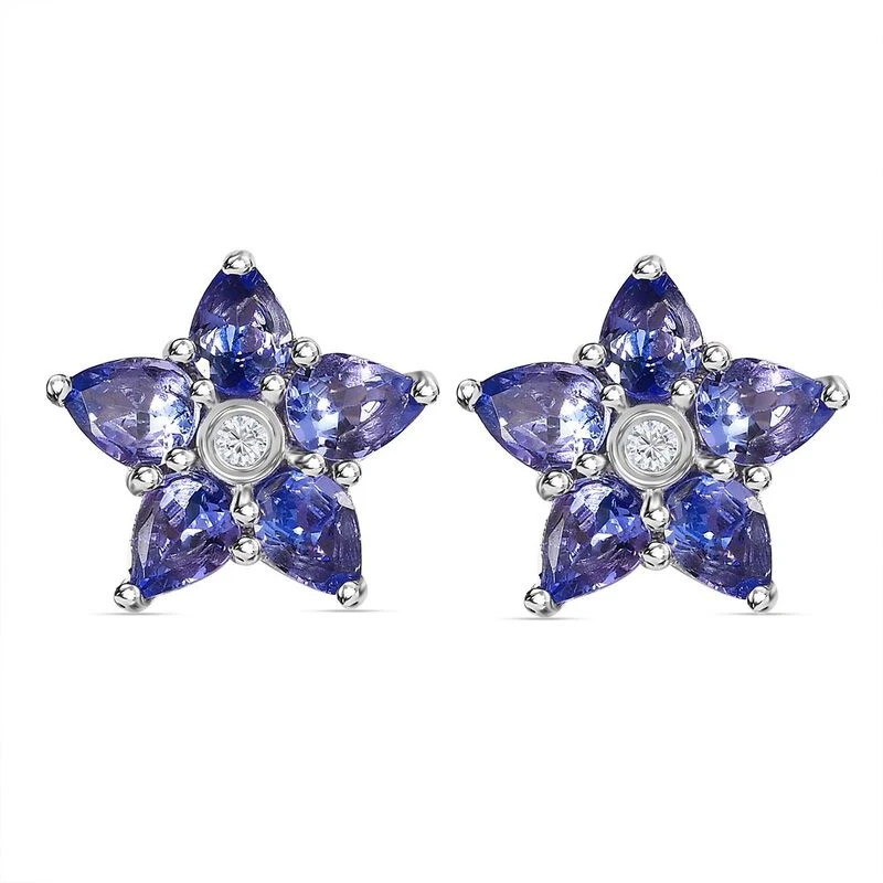 Diese floralen Ohrringe verleihen mit den schönen pleochroitischen Farbtönen von 10 Tansaniten und 2 Zirkonen im Zentrum des Designs einen bezaubernden Look. Beide Edelsteine sind Geburtssteine des Monats Dezember in 1,7 Gramm platiniertem Silber gefasst. Tragen Sie sie mit Steckverschlüssen.