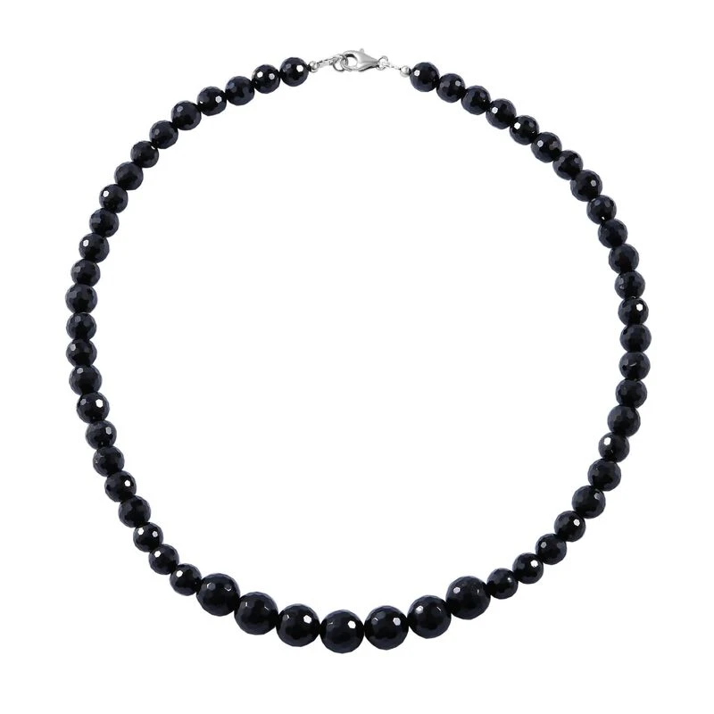 Thai Schwarzer Spinell Halskette Ca. 45 Cm 925 Silber Rhodiniert Ca. 300.00 Ct