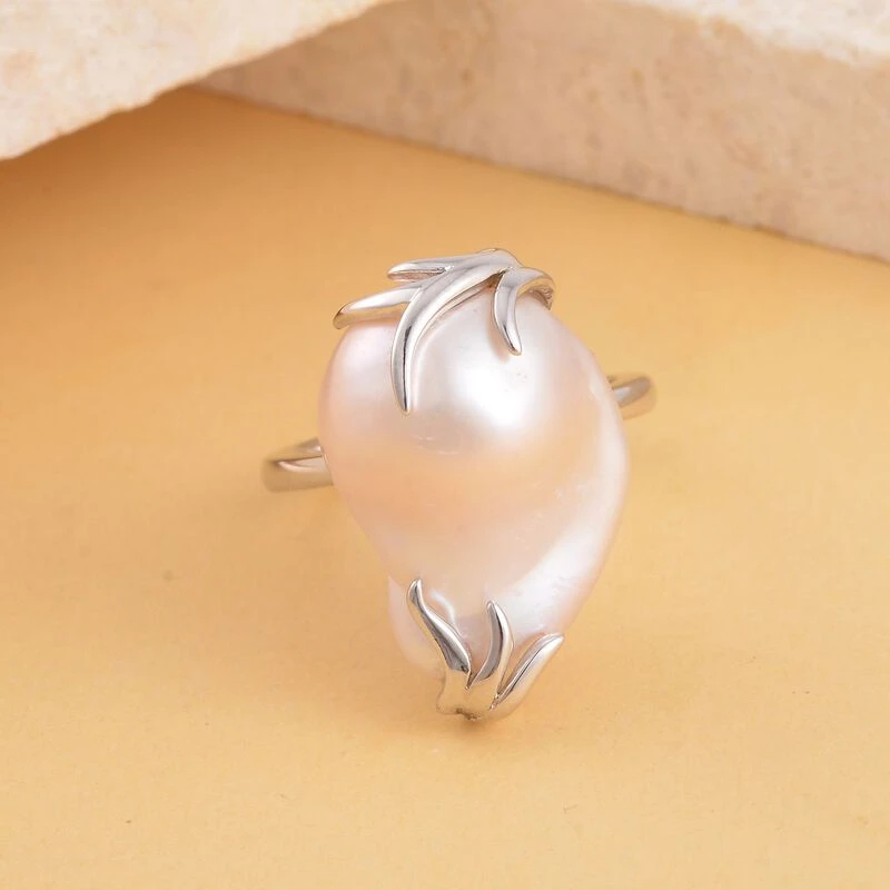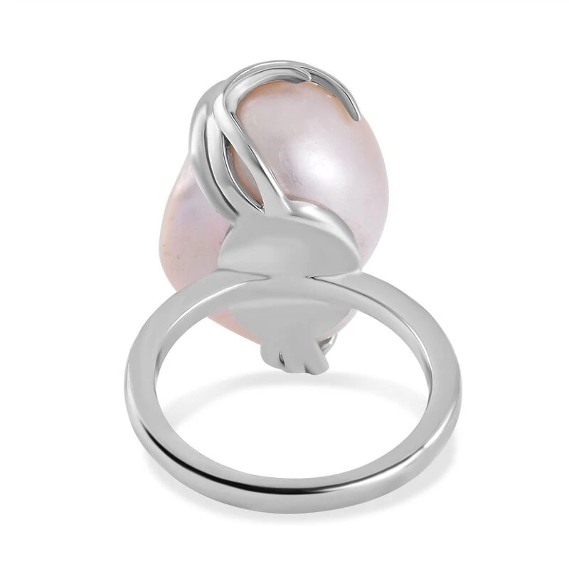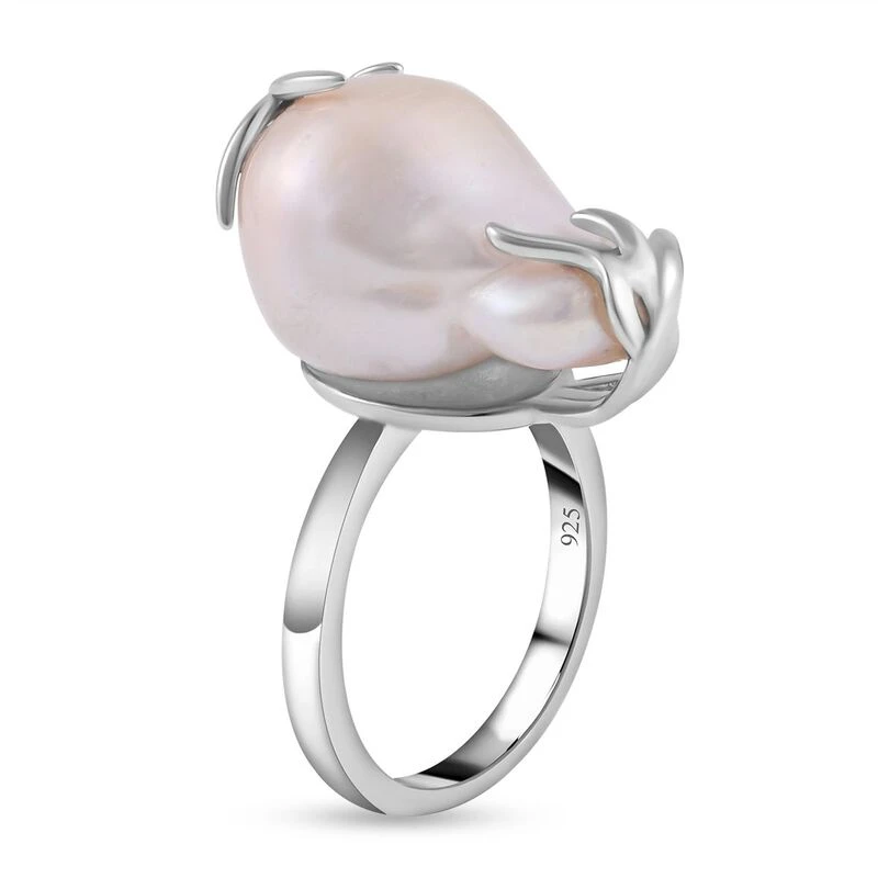 Weiße Barockperle Ring, 925 Silber Rhodiniert (Größe 16.00)