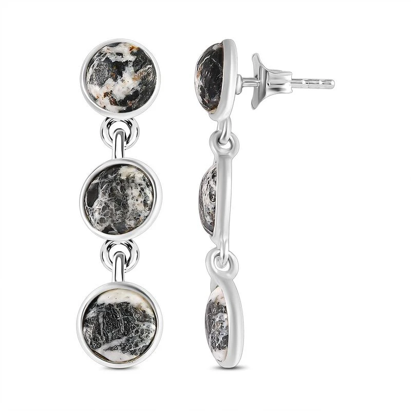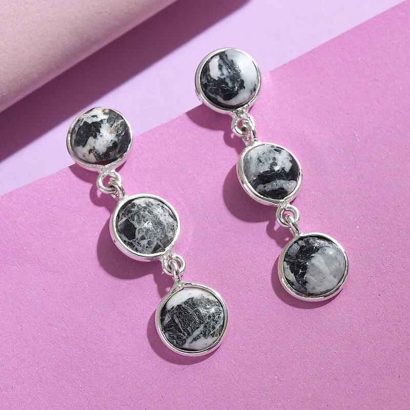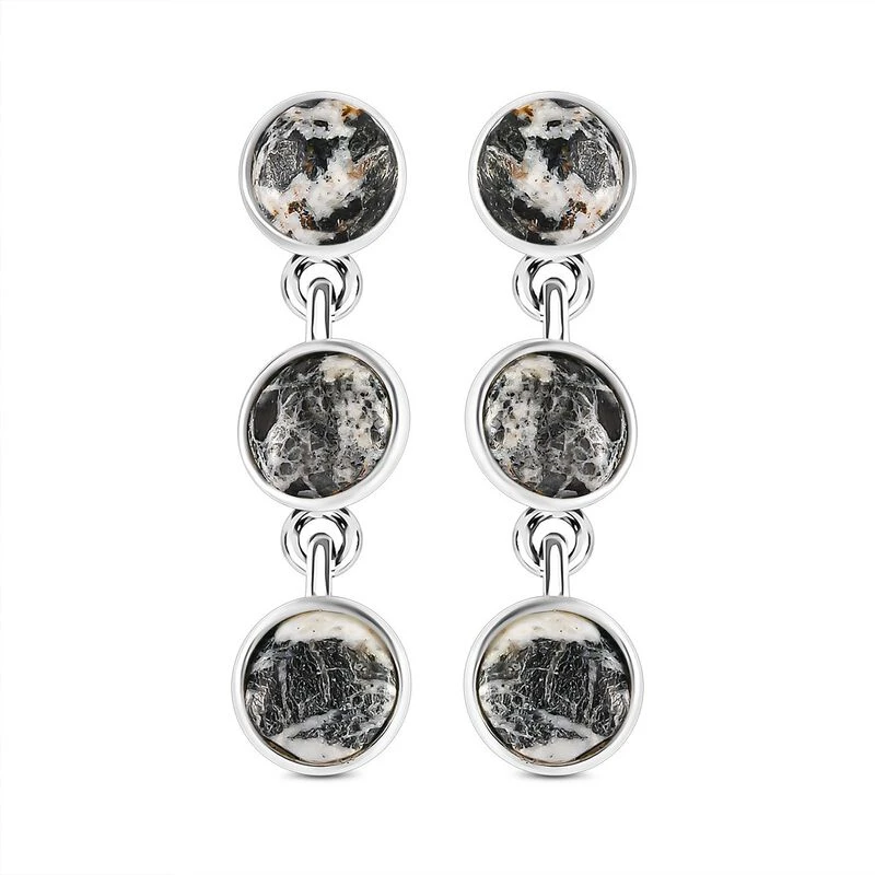 Trilogie-Ohrhänger mit weißem Büffel (7,20 ct.) in platiniertem Silber (1,7g). Einzigartige Edelsteine mit anmutigem Design zu Top-Preisen – jetzt shoppen!