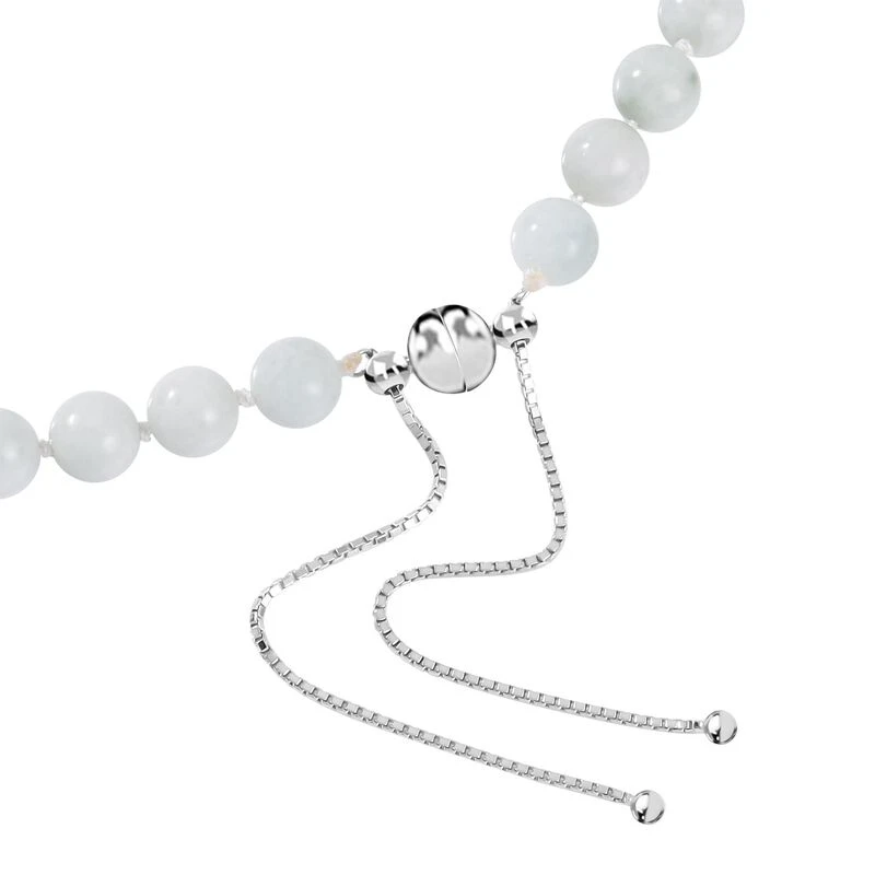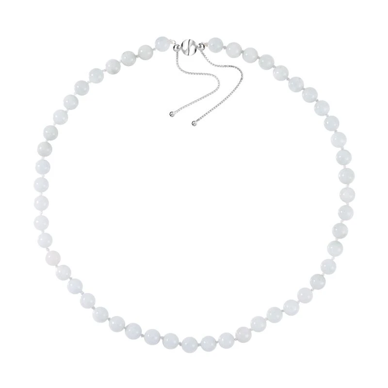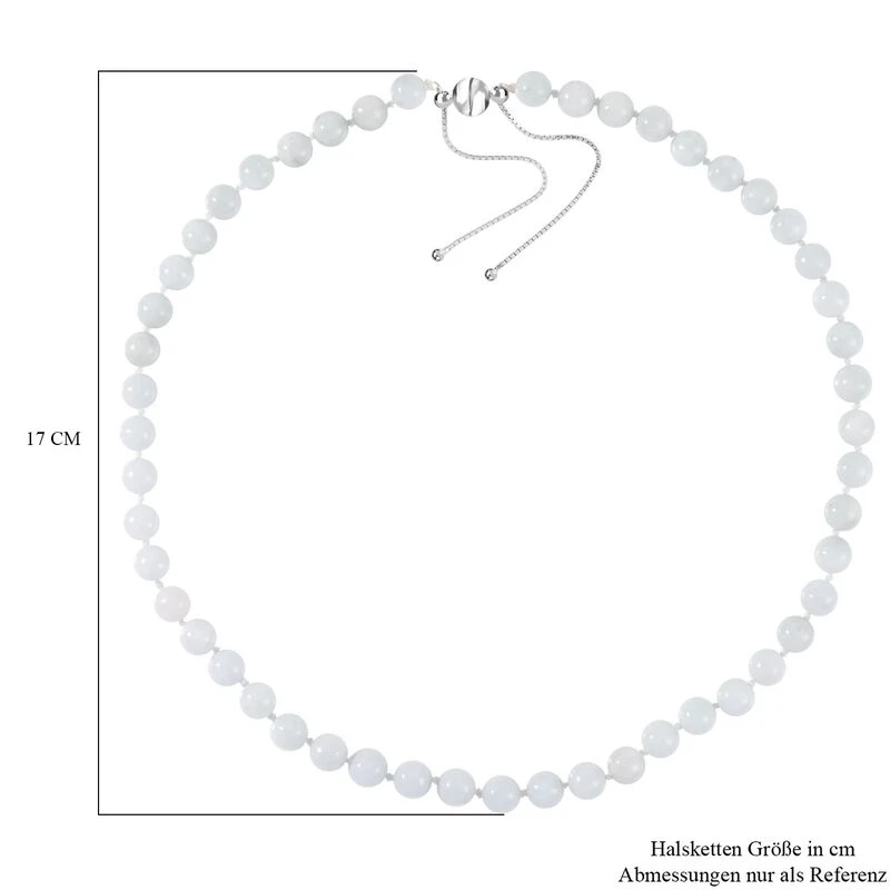 Weiße Jade Halskette Ca. 45 Cm 925 Silber Rhodiniert Ca. 208.95 Ct