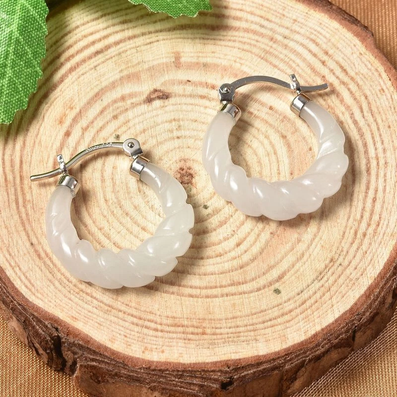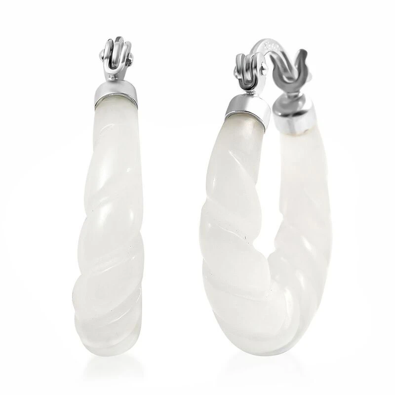 Weiße Jade Ohrringe 925 Silber Rhodiniert Ca. 18.50 Ct