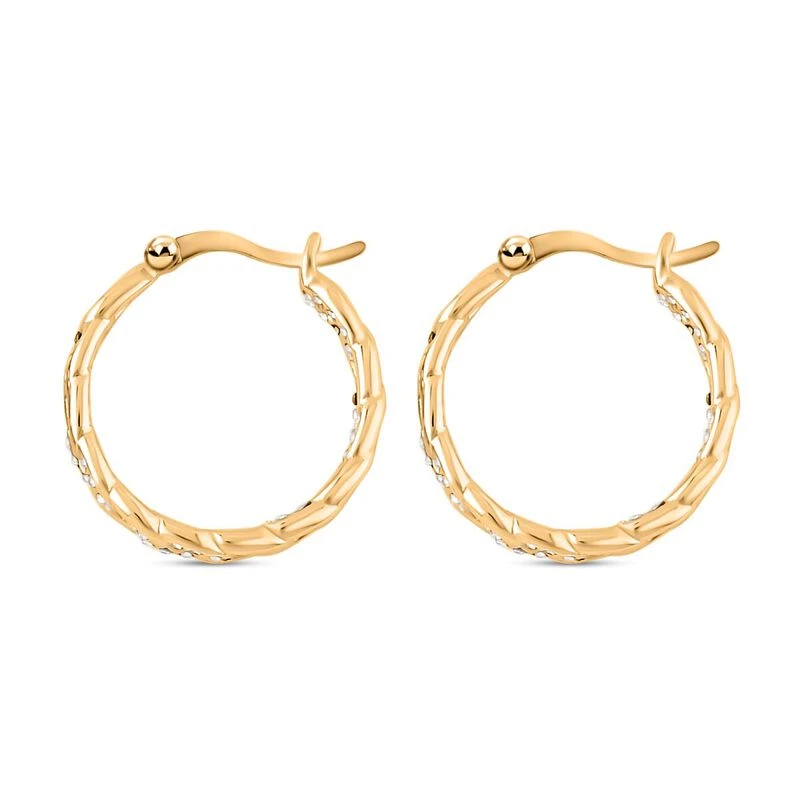 Weiße Kristall Creolen, Edelstahl, Goldfarben