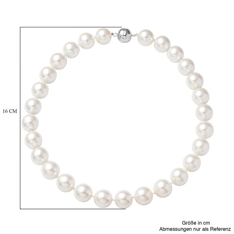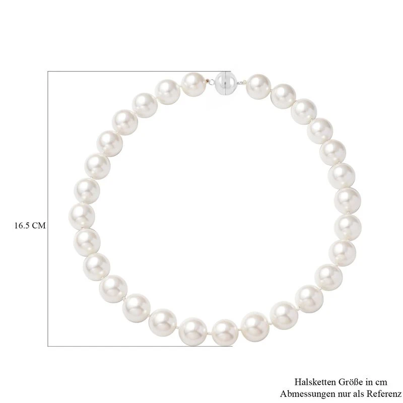 Weiße Muschelkernperlen-Halskette, Ca. 50 Cm, 925 Silber Rhodiniert