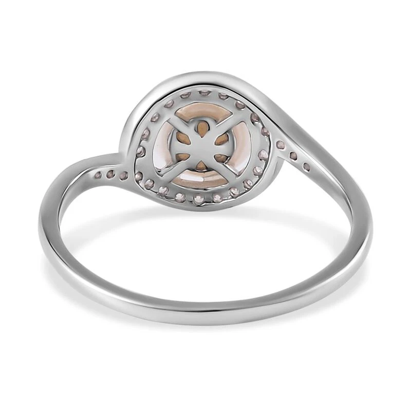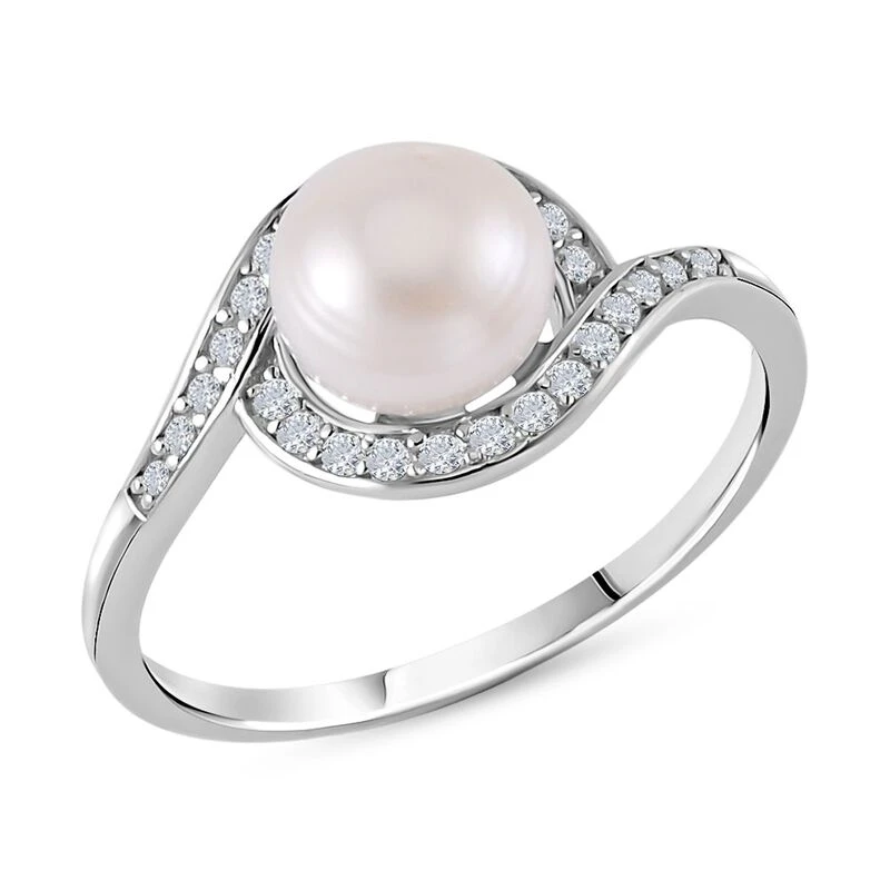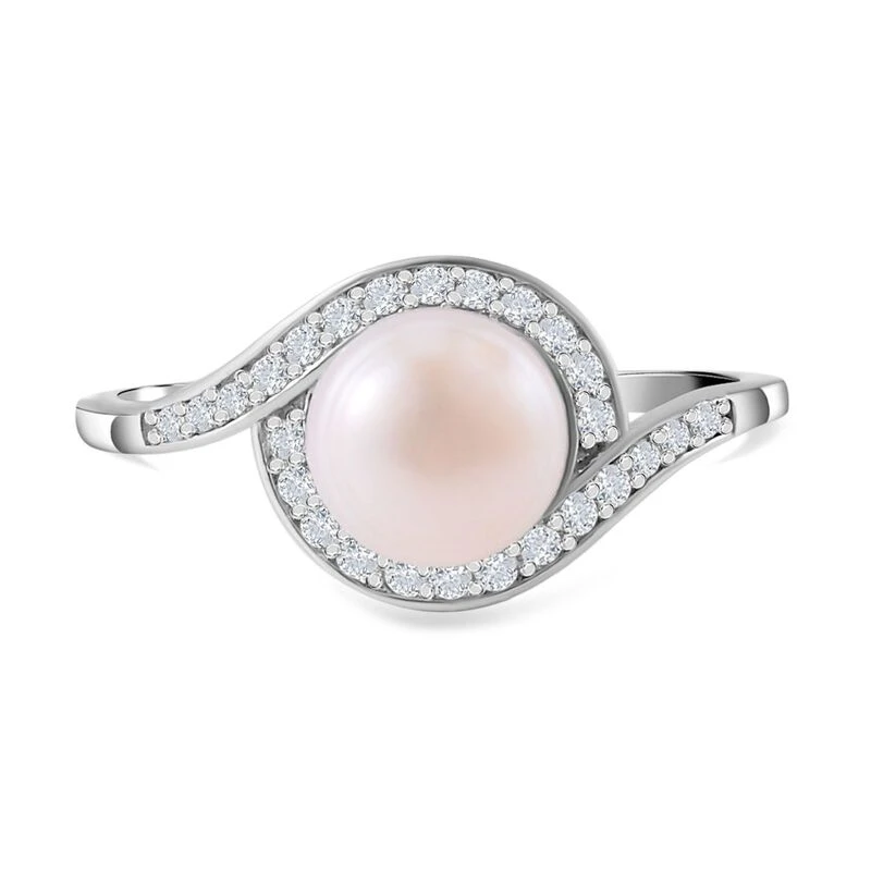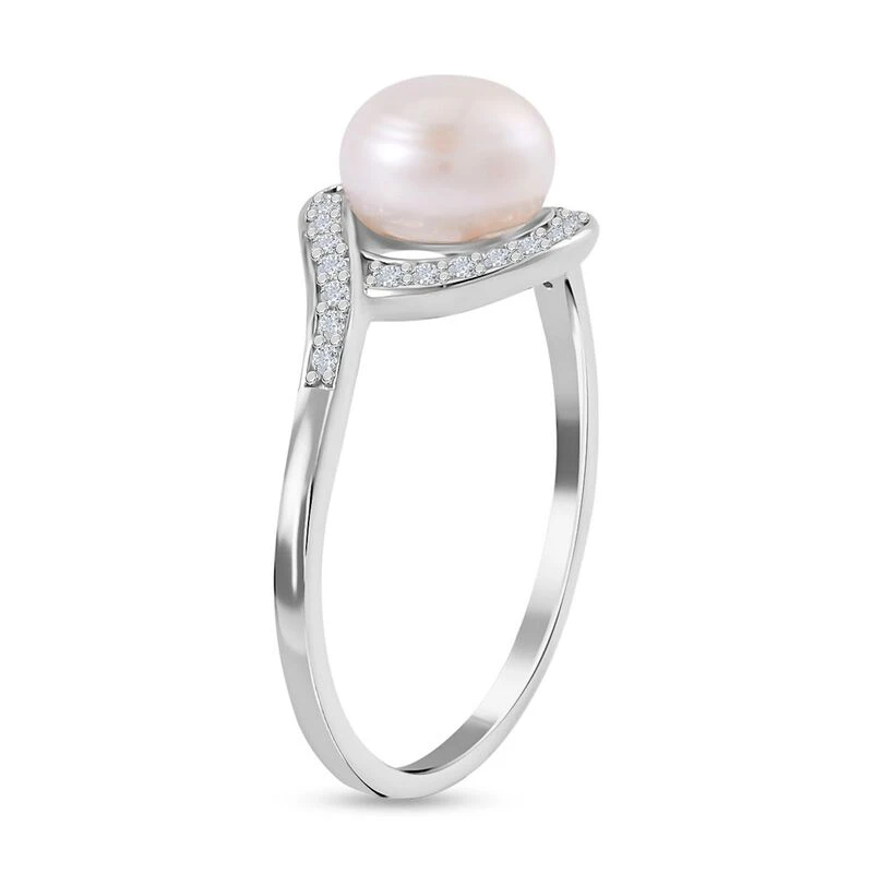 Weiße Süßwasser Perle, Weißer Zirkonia Ring, 925 Silber Rhodiniert (Größe 20.00) Ca. 0.24 Ct