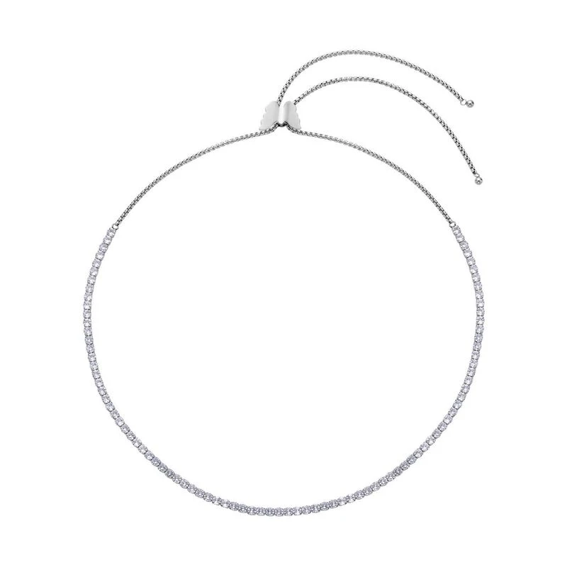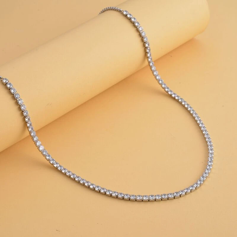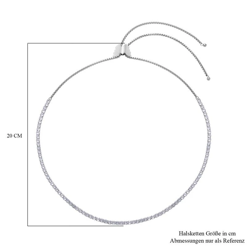 Weiße Zirkonia Halskette, Ca. 38 Cm, Edelstahl Ca. 45.00 Ct