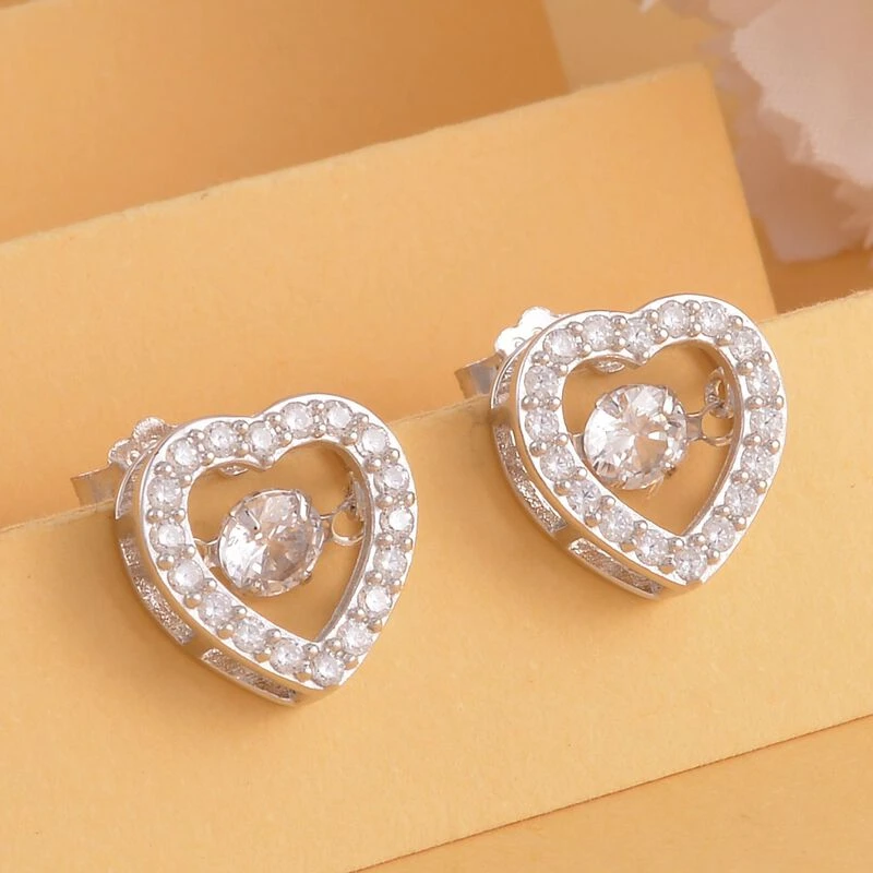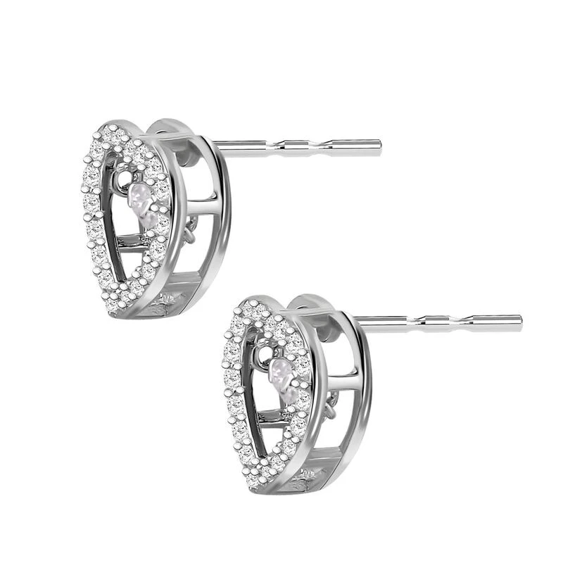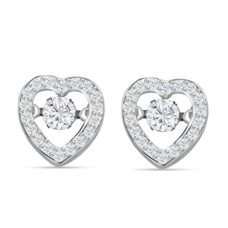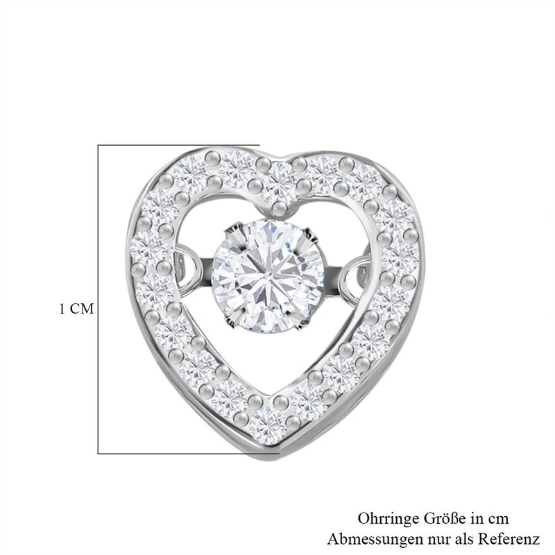 Herz-Ohrringe in rhodiniertem Silber. Genießen Sie das einzigartige Funkeln und Tanzen des inneren Steins, das Ihren Looks einen einzigartigen und verspielten Reiz verleiht.