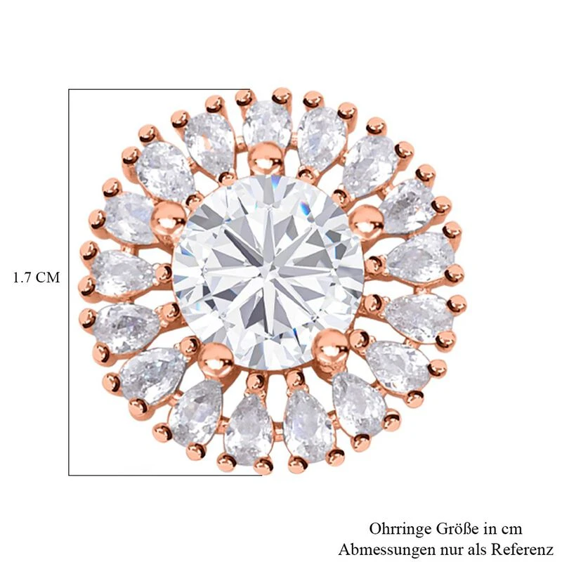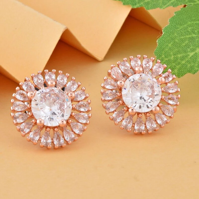 Weiße Zirkonia Ohrringe, Messing Roséfarben