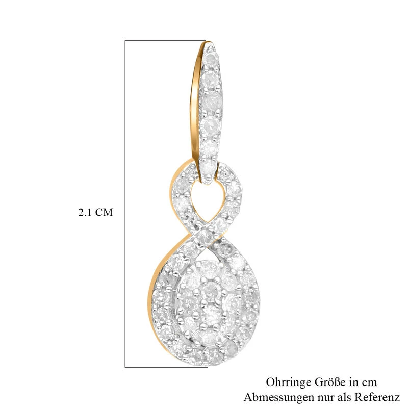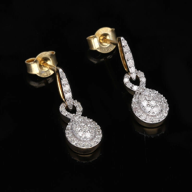 Weißer Diamant Ohrringe 925 Silber Gelbgold Vermeil Ca. 0.50 Ct