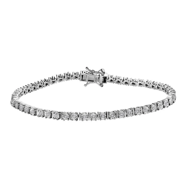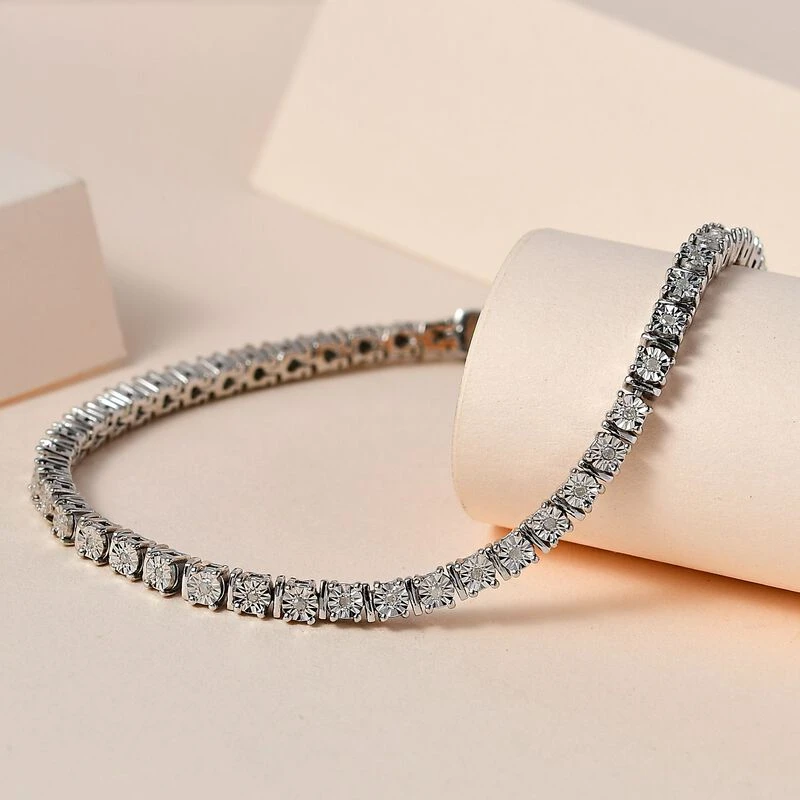Weißer Diamant P3 Armband Ca. 20 Cm 925 Silber Platiniert Ca. 0.25 Ct