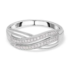 Weißer Diamant P3 Ring, 925 Silber Platiniert (Größe 18.00) Ca. 0.20 Ct