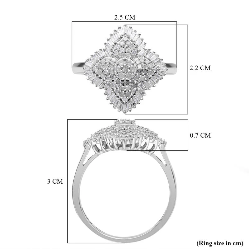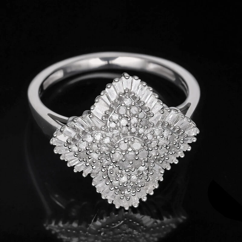 Dieser Cocktail-Ring für Damen verleiht Ihren Looks einen kunstvollen Reiz mit dem Funkeln von 107 Diamanten in einem Cluster-Design, das ein florales Muster bildet. Dieser Diamant-Ring für Damen zieht mit seiner Pracht und Opulenz garantiert alle Blicke auf sich. Er ist in 4 Gramm platiniertem Silber gefasst.
