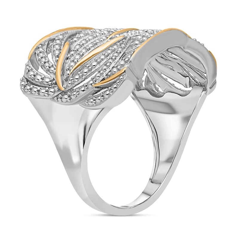 Dieser gewagte Cocktail-Ring für Damen ist aus 2 Gramm vergoldetem und rhodiniertem Silber gefertigt, um Schönheit und Haltbarkeit zu gewährleisten. Das Schmuckdesign wird durch einen einzelnen Diamanten akzentuiert, der unter einer Lichtquelle schimmert und für den perfekten Glanz sorgt. Die gepunktete Millgriff-Arbeit verleiht dem Damenring zusätzliche Schönheit.