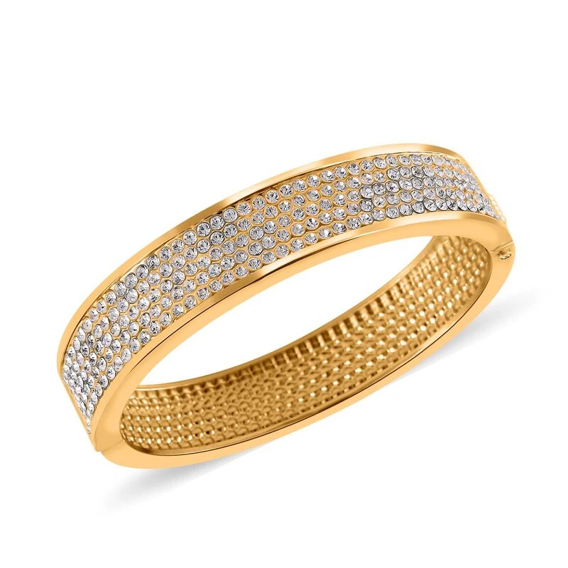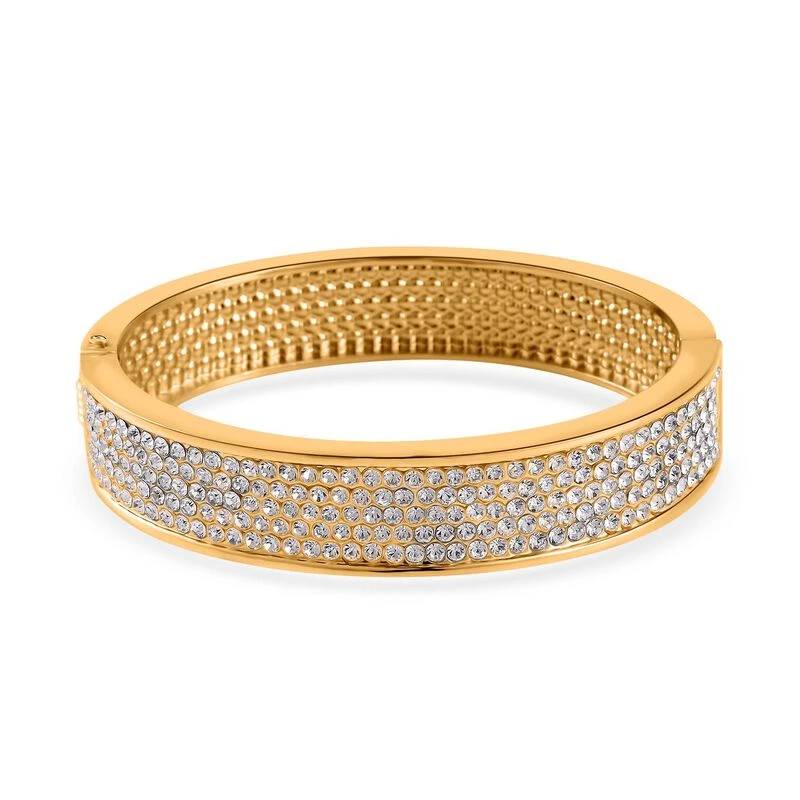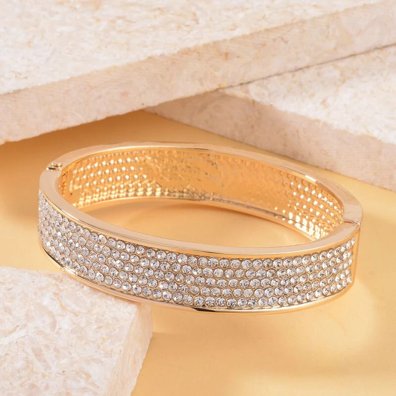 Weißer Kristall Armreif Ca. 19 Cm, Goldfarben