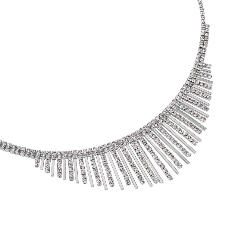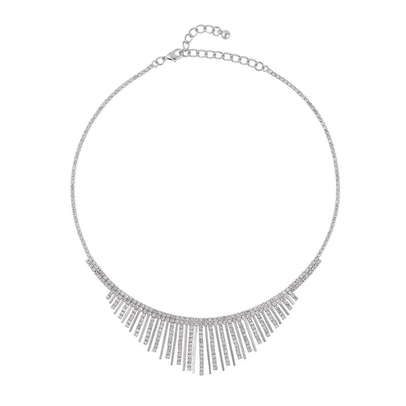 Weißer Kristall Halskette, Ca. 40.5 Cm, Silberfarben