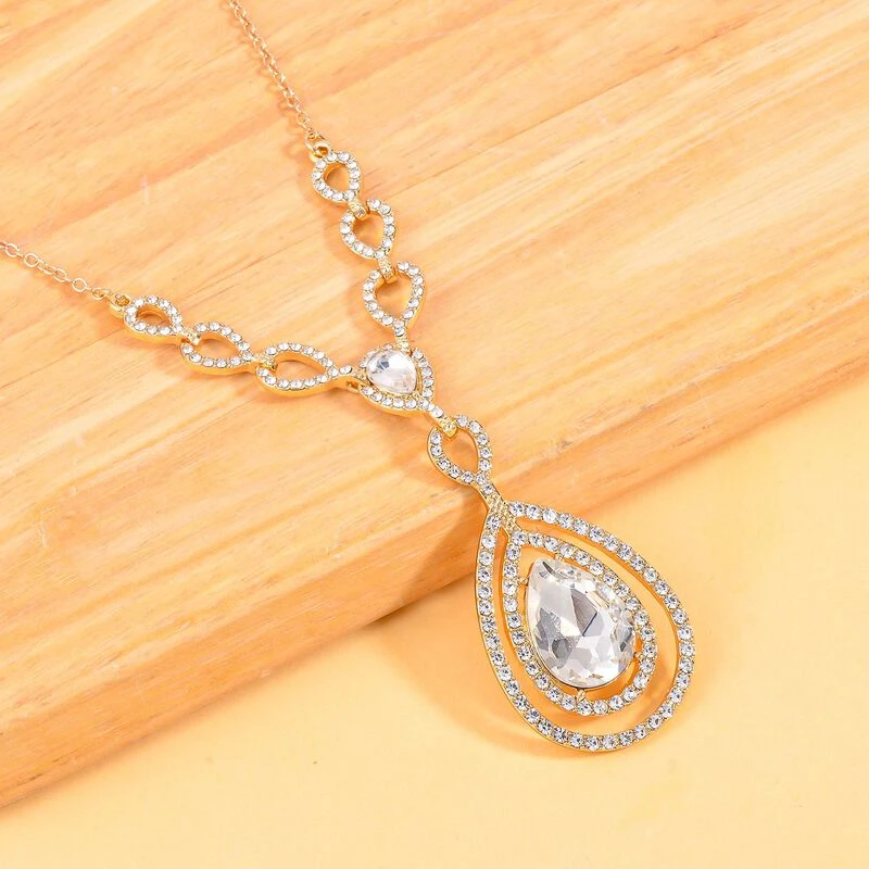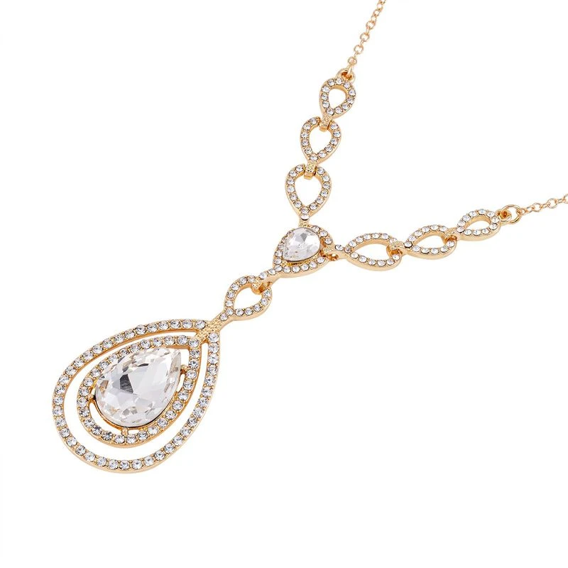 Weißer Kristall Halskette Ca. 50 Cm, Vergoldet