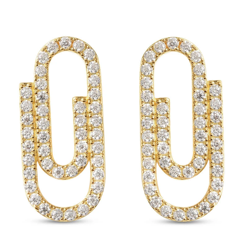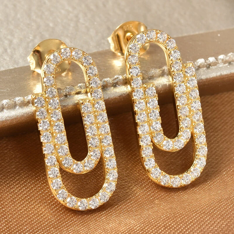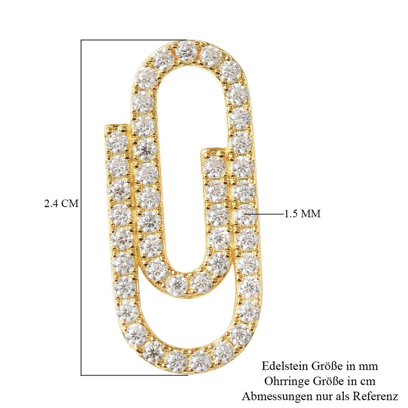 Weißer Zirkon Ohrringe, 925 Silber Vergoldet, Ca. 1,85 Ct
