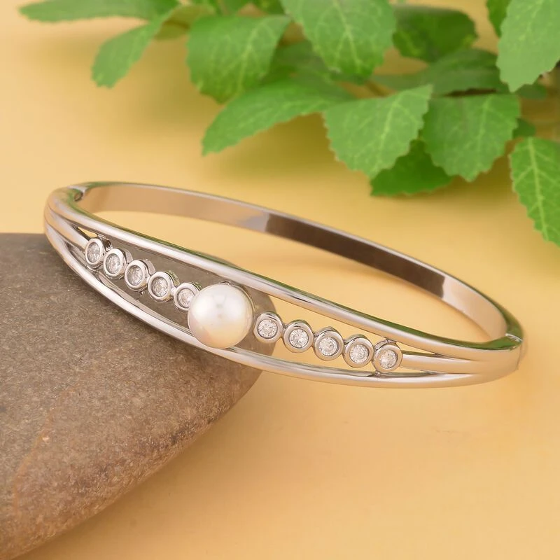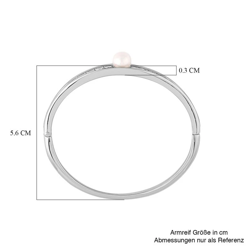 Weißer Zirkonia, Weiße Muschelkernperle Armreif Ca. 18 Cmca. 0.50 Ct