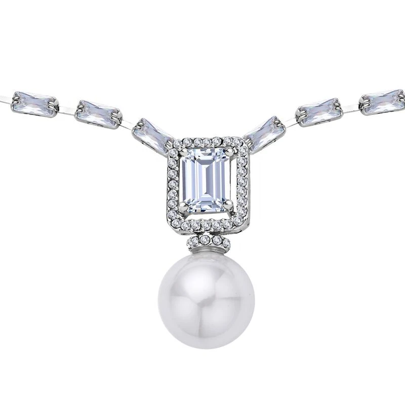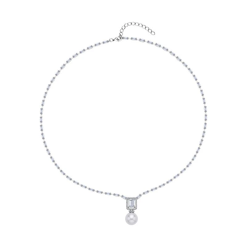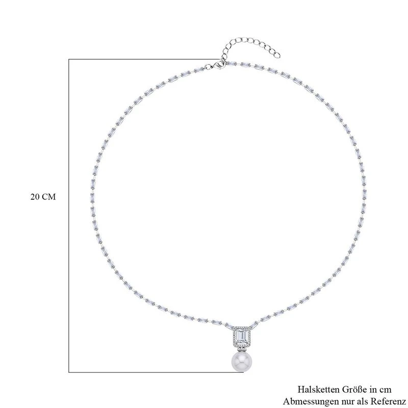 Weißer Zirkonia, Weiße Muschelkernperle, Halskette, Ca. 50 Cm, Ca. 8.00 Ct