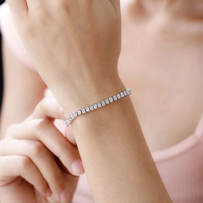 Weißes Diamant Armband Ca. 18 Cm 925 Silber Platiniert Ca. 0.25 Ct