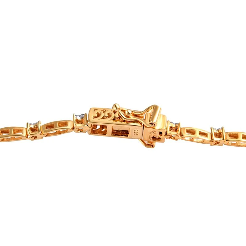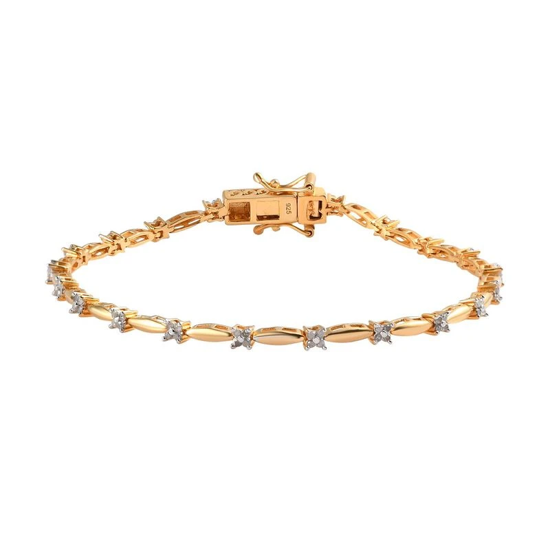 Weißes Diamant Armband, Ca. 19 Cm, 925 Silber Gelbgold Vermeil Ca. 0.50 Ct