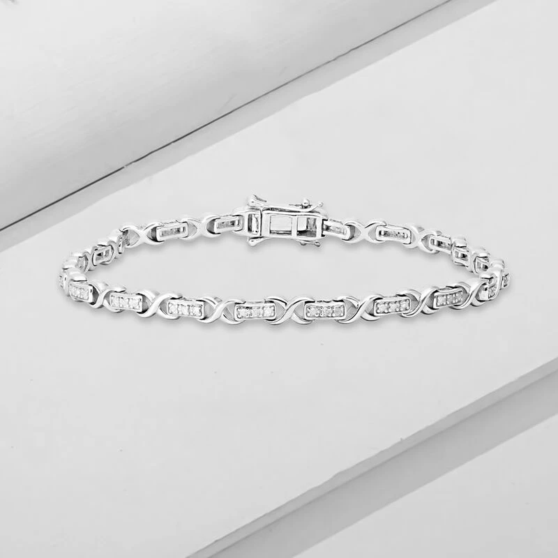 Weißes Diamant Armband, Ca. 19 Cm, 925 Silber Platiniert Ca. 0.25 Ct