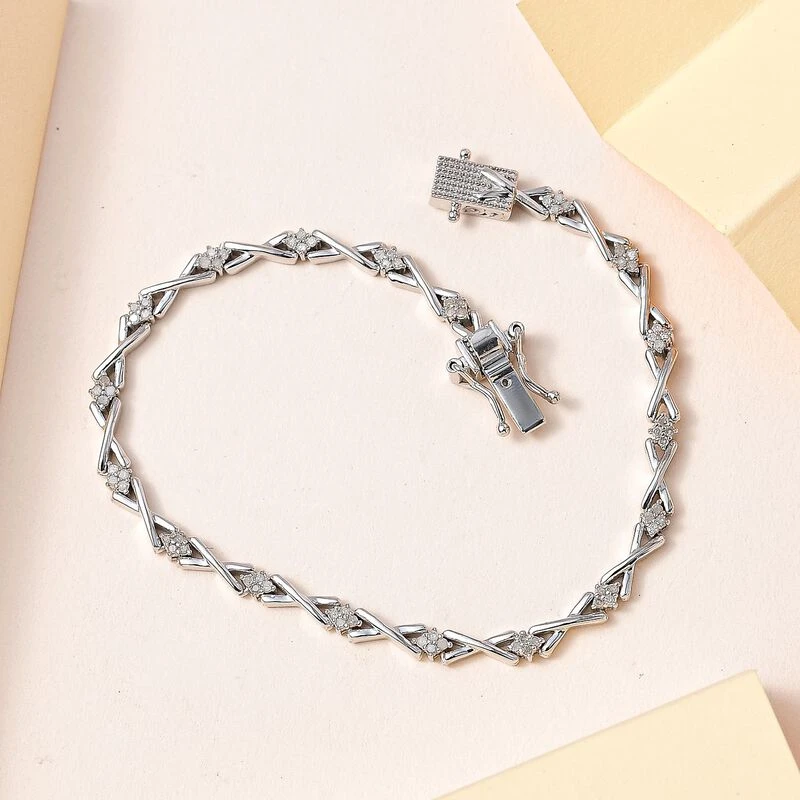 Weißes Diamant P3 Armband, Ca. 19 Cm, 925 Silber Platiniert Ca. 0.60 Ct