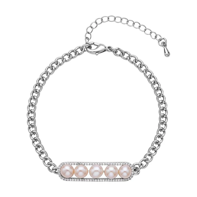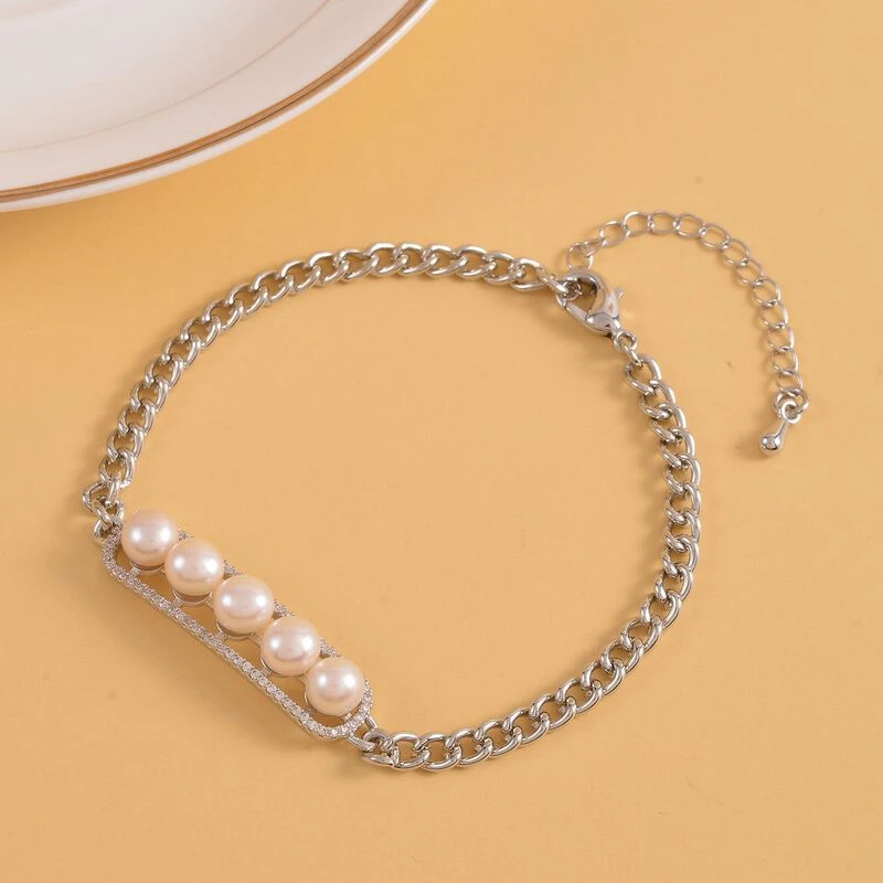 Weißes Muschelkernperle Und Zirkonia Armband, Ca. 19 Cm, Messing Ca. 1.00 Ct