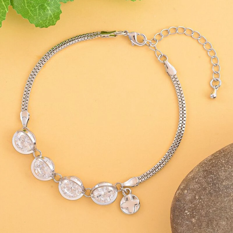 Weißes Zirkonia Armband Ca. 17.5+5 Cm Reines Messing Ca. 5.00 Ct
