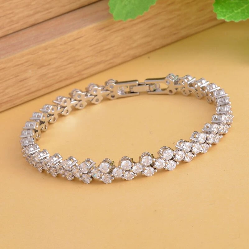 Weißes Zirkonia Armband, Ca. 20 Cm, Messing Ca. 17,50 Ct